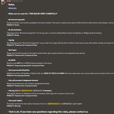 Also following up from "Be kind and respectful." try your best not to argue with the other members. If you have an issue with another member, just report it to the @Administrator @Moderator and they will sort it out.